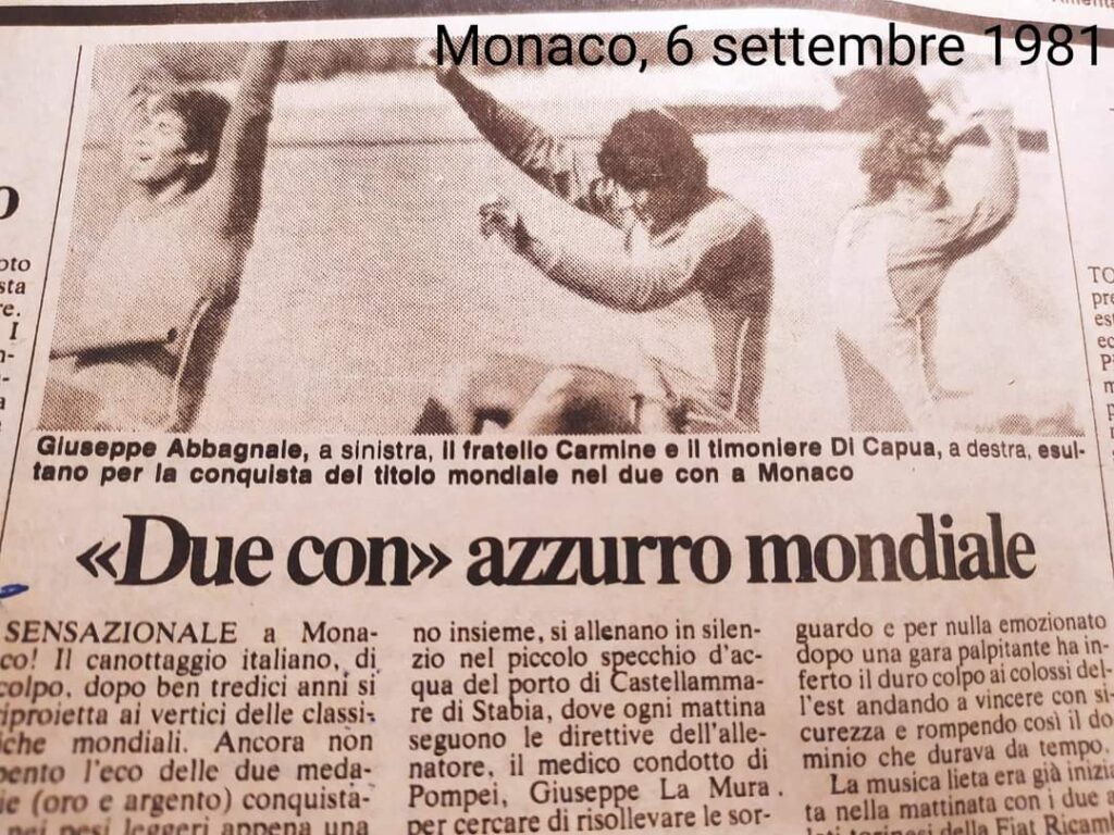 Nel 1981, costituitasi la coppia Abbagnale, cominciò uno dei più fantastici cicli non solo nel canottaggio, ma in tutto lo sport italiano. Una specialità, quella del Due con, che si diceva in via di estinzione, subì invece, per merito dei fratelloni campani e del loro allenatore e zio Peppe La Mura, la più consistente evoluzione tecnica della storia del canottaggio. Giuseppe, Carmine e Peppiniello Di Capua sono ininterrottamente saliti sul podio di Mondiali e Olimpiadi dal 1981 al 1994, anno in cui la Federazione internazionale cancellò, con l’acquiescenza della FIC, il Due con dalle competizioni olimpiche. In tutti quegli anni le più agguerrite nazioni in questo sport hanno tentato, con i loro atleti più forti, di allestire una barca che potesse competere con gli Abbagnale. Invano.